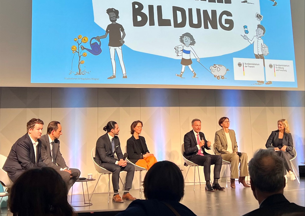 Beim „Aufbruch finanzielle Bildung“ diskutierten Bundesbildungsministerin Bettina Stark-Watzinger und Bundesfinanzminister Christian Lindner mit engagierten Akteur:innen darüber, wie Finanzbildung gelingen kann und welche Themen in den Blick genommen werden sollten!